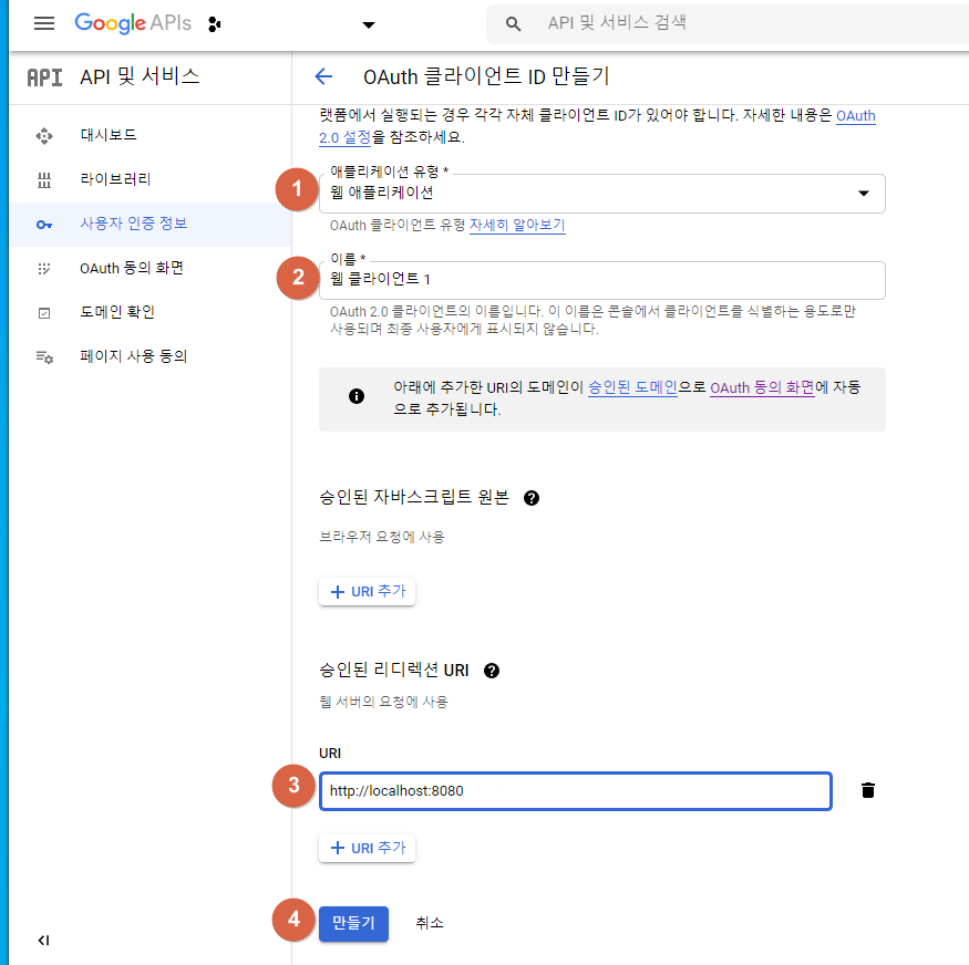 2. Google 개발자 콘솔 API에서 출처를 허용 목록에 추가하기.