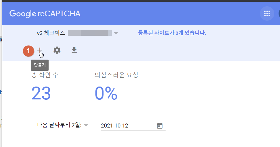 1. 캡차를 사용하기 위해 아래 링크로 접속해 사이트 등록을 진행한다.