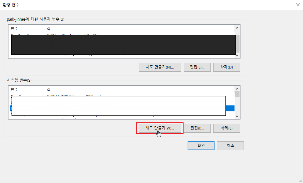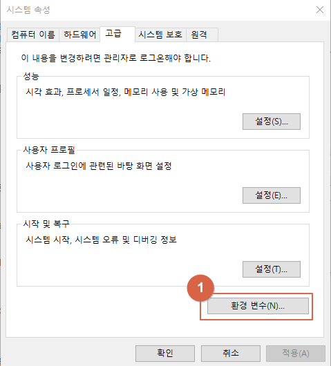 이제 환경변수를 설정해보겠습니다.