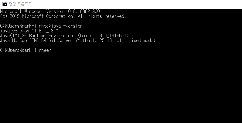 java -version 명령어를 입력하고 엔터