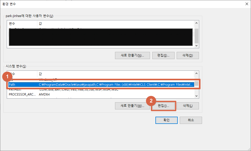 그 다음 Path를 찾아서 편집을 눌러주세요~~