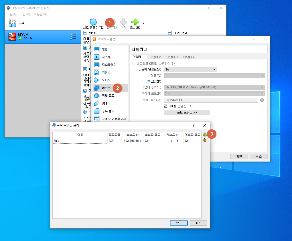 게스트 ip는 vm에서 터미널 - ipconfig 에 출력되는 IP를 입력한다.
