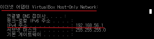 호스트 IP는 윈도우에서 cmd - ipconfig