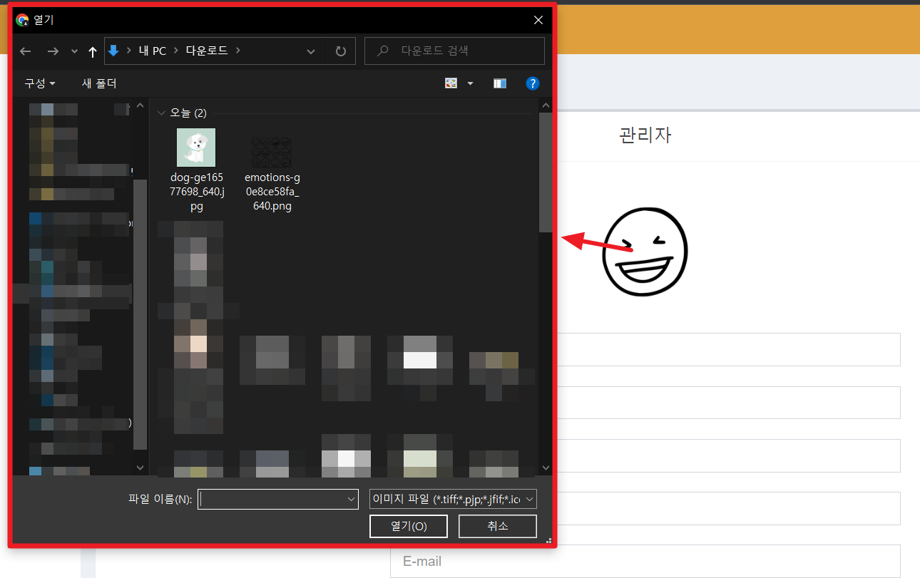 기본이미지를 클릭하면 아래 처럼 이미지 업로드창이 뜨고