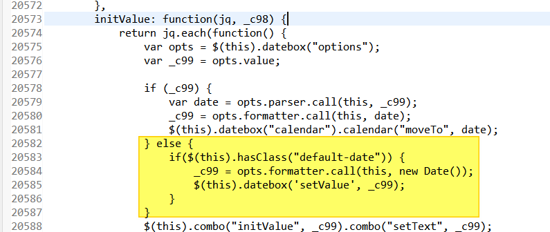 특정 input 만 기본값을 설정하기 위해 20583 라인에 hasClass 조건문을 추가하여