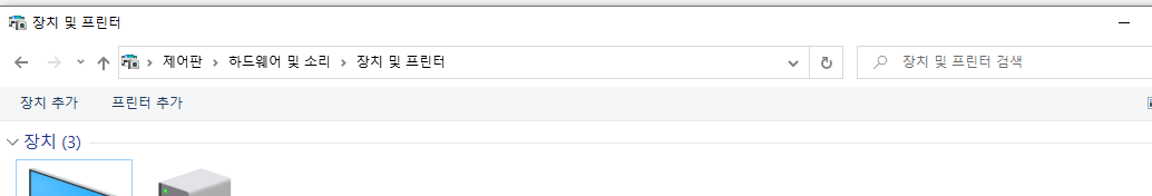 제어판 -> 하드웨어 및 소리 -> 장치 및 프리터 화면으로 들어가본다!