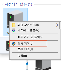 장치 제거를 눌러주고~